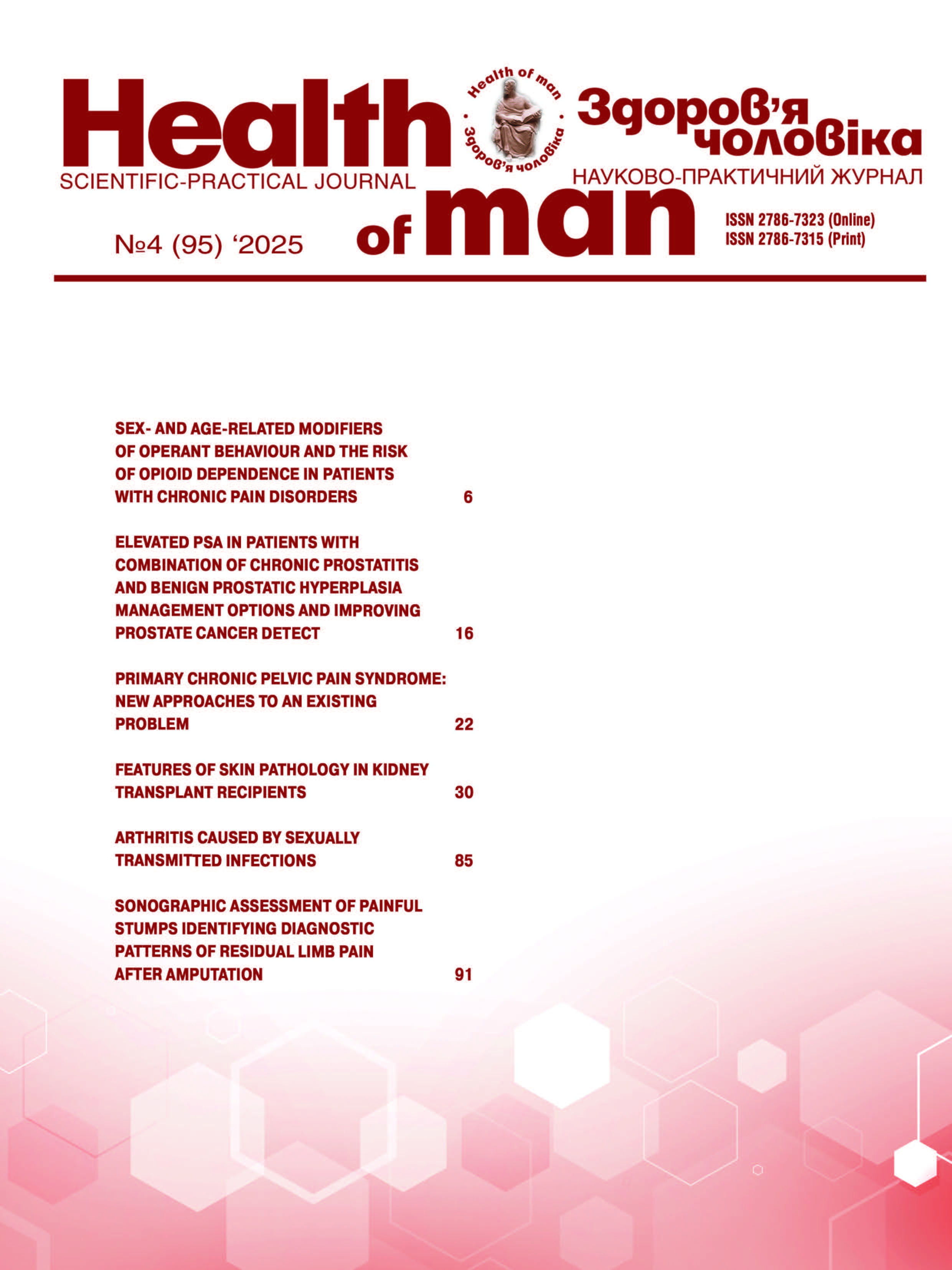 Until 2022, it was published under the title «Здоров'я чоловіка. Здоровье мужчины. Zdorovʹe mužčiny» (ISSN 2307-5090 (Print) ISSN 2412-5547 (Online) archive of numbers